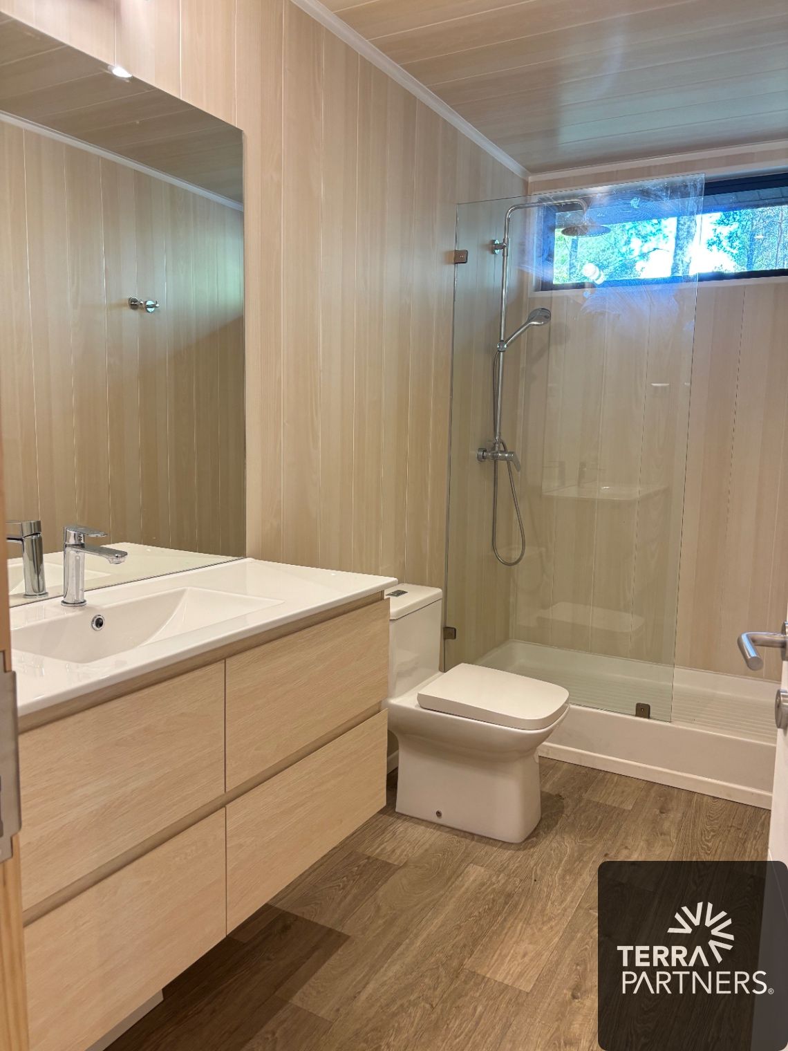Ubicada en La Reserva de Pucón, a solo 12 minutos del centro, esta exclusiva casa de Tecnofast se asienta sobre un amplio terreno de 5.000 m². El condominio destaca por sus amplios espacios y áreas comunes que incluyen lagunas, senderos y zonas de trote, todo con acceso controlado para garantizar la seguridad de sus residentes. La propiedad cuenta con una superficie construida de 126 m², ofreciendo una distribución funcional y acogedora ideal para disfrutar en familia.