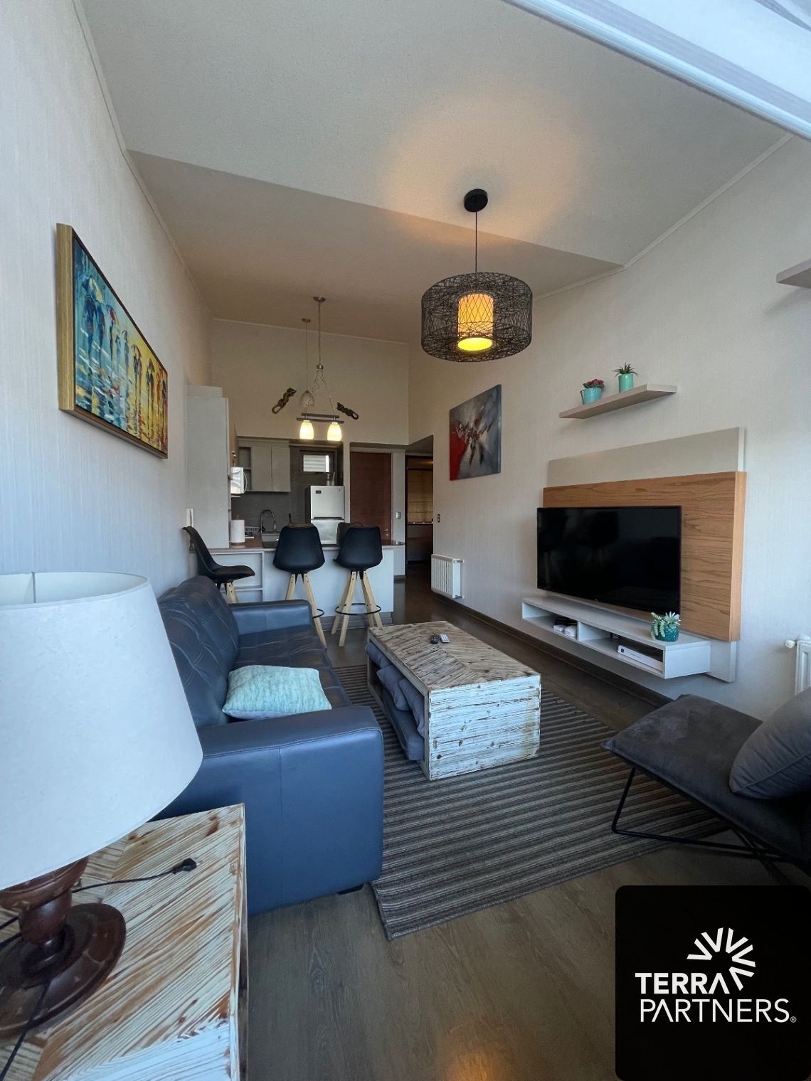 Ubicado en el prestigioso Edificio Costa Pucón de Socovesa, este moderno departamento ofrece una experiencia inigualable de confort y estilo. Con una superficie total de 64 m², el inmueble cuenta con 2 dormitorios, siendo el principal en suite, y 2 baños elegantemente diseñados con vanitorios de mármol. La cocina, de concepto abierto, está equipada con una cubierta de granito y todos los electrodomésticos necesarios, incluyendo campana extractora, horno eléctrico, microondas, lavavajillas y refrigerador. El hall de acceso, el living, el comedor y los dormitorios presentan un elegante piso fotolaminado, mientras que la terraza de 12 m², con piso de gres porcelánico y parrilla móvil, se convierte en el espacio ideal para disfrutar de asados y de las impresionantes vistas al volcán Villarrica.